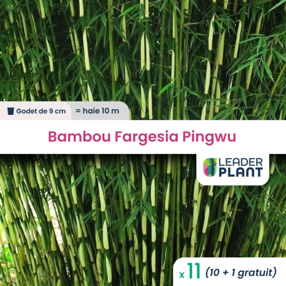 le bambou fargesia pingwu est une variété non traçante : il ne forme pas de rhizomes envahissants. Idéale pour les haies brise-vue ou brise-vent avec son port droit et son feuillage persistant. En pleine terre, sa taille peut atteindre 3m de haut et en bac, la hauteur peut atteindre 1.5 à 2m de haut.