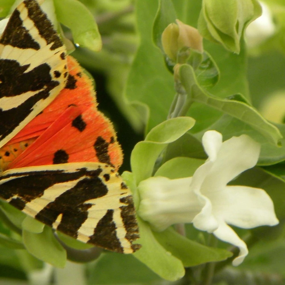 cette plante, composée de petites fleurs blanches très parfumées, produit aussi des fruits non comestibles contenant énormément de graines soyeuses, d’où son nom commun de plante-soie.