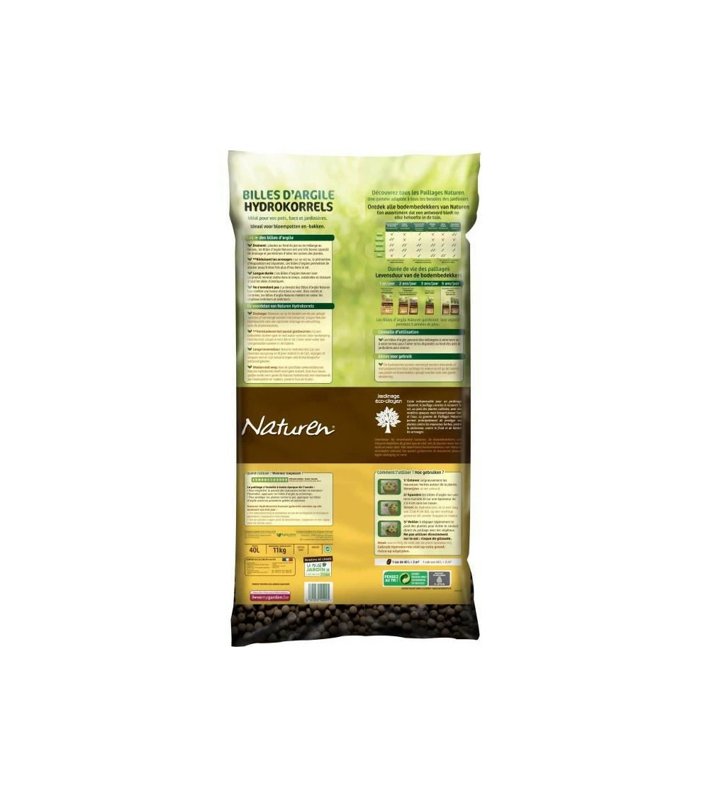 Naturen billes d’argile 40l, protege du gel et permet une économie d’arrosage, support de culture nf u 44 – 551 argile expansée calibre 8 – 16 mm, produit naturel, utilisable en agriculture biologique, fabriqué en france informations réglementaires