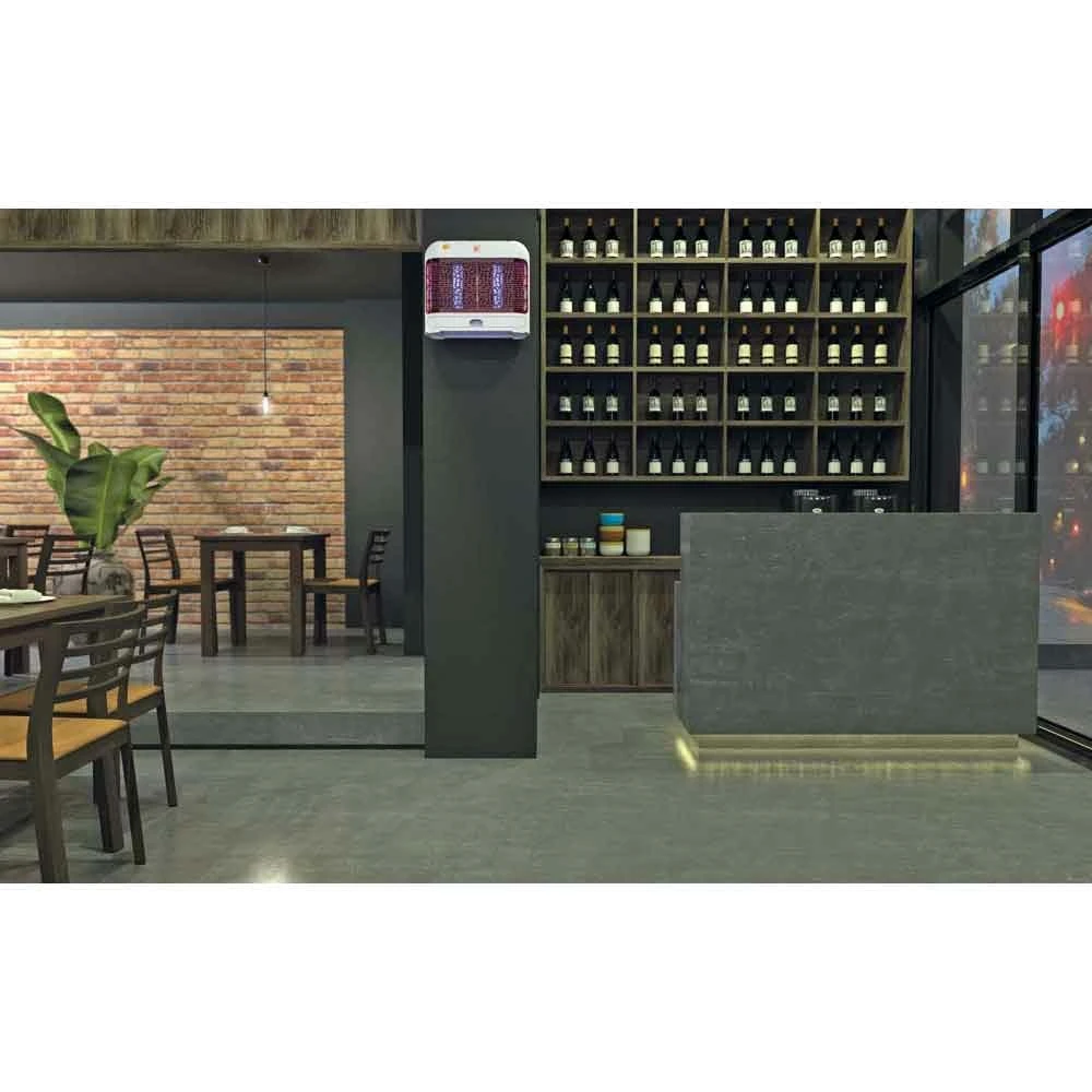 Les insectes volants (mouches, mites, moustiques) sont attirĂ©s par la lumière ultra-violette et dĂ©truits immĂ©diatement par la grille Ă haute tension. Les insectes morts sont collectĂ©s dans le bac amovible au fond du boĂ®tier pour faciliter le nettoyage et l’entretien. La lumière ultra-violette est sans danger pour l’ĂŞtre humain et les animaux domestiques. Par rapport Ă une lampe fluorescente, une lampe led utilise la moitiĂ© de la puissance (watts) pour gĂ©nĂ©rer la mĂŞme sortie de lumière (lumens) et a une durĂ©e de vie beaucoup plus longue. Le rĂ©seau Ă©lectrique Ă haute tension est une nouvelle conception qui augmente considĂ©rablement l’efficacitĂ© de capture et rĂ©pond Ă toutes les exigences de la ce. Puissance : 24 watts surface : 80 m² la lumière ultra-violette est sans danger pour l’ĂŞtre humain et les animaux domestiques. Utilisation facile 1.pendez ou fixez l’appareil Ă une hauteur que les enfants et les animaux ne peuvent pas atteindre (2 mètres de hauteur ou plus sont recommandĂ©s). Branchez-le Ă l’alimentation secteur appropriĂ©e Ă l’aide de la prise fournie. 2.vous devez nettoyer chaque semaine votre destructeur d’insectes (plus souvent si des niveaux Ă©levĂ©s d’insectes sont prĂ©sents). Utilisez la brosse fournie Ă cet effet pour nettoyer la grille mĂ©tallique Ă haute tension. Videz le bac Ă insectes morts situĂ© Ă la base de l’appareil en le dĂ©vissant.