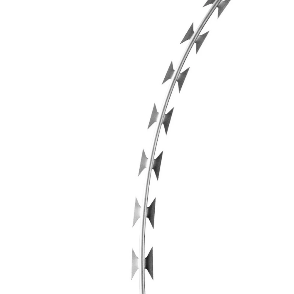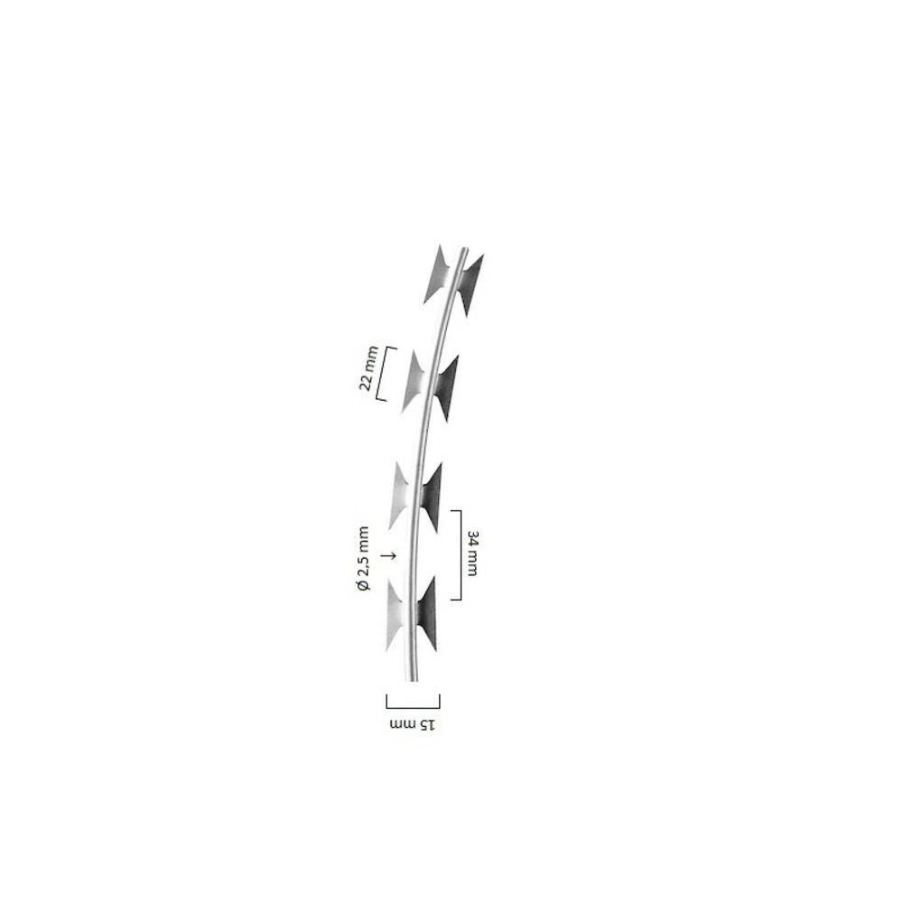 Sécurisez votre résidence ou tout site commercial avec ce fil barbelé haute sécurité. ce rouleau concertina convient parfaitement pour protéger votre jardin, éviter les cambriolages et éviter toute intrusion indésirable. Il résiste également aux outils coupants et il est conçu pour être déroulé en formant des cercles retenus par les agrafes plates jusqu’à 60m, 150m dégrafé, ce qui garantit la formation d’une barrière infranchissable sur toute sa longueur grâce aux pointes d’acier de 15mm de large et espacées de 34mm. la galvanisation assure une très grande résistance au temps et aux conditions extérieures. caractéristiques techniques : matière : acier traitement : galvanisation lames bto 22 dimensions lame : épaisseur 0.5mm longueur 22mm longueur du rouleau : 150m (dégrafé) 60m (étiré), 10m (enroulé) diamètre enroulé de 73cm pour la pose : utilisez une agrafeuse spéciale concertina pour une fixation optimale. Il est recommandé d’être au minimum deux personnes pour l’installation. important : risque de coupures, utilisez des gants lors de la réception, de la manipulation et de la pose du rouleau. Si le produit doit être stocké, l’entreposer hors de portée des personnes non sensibilisées aux risques de blessures.