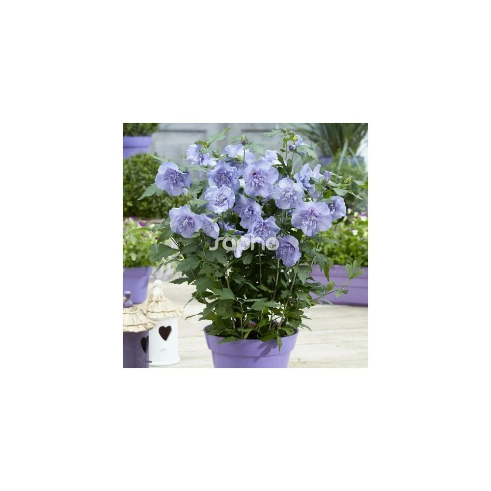 l’hibiscus blue chiffon® est un petit arbuste atteignant à taille adulte 2 mètres de haut. Sa floraison bleue double, tout l’été en fait un arbuste indispensable dans vos massifs ou en isoler au jardin. Au fil des années cette plante restera trapue est compacte si elle est taillée après la floraison.