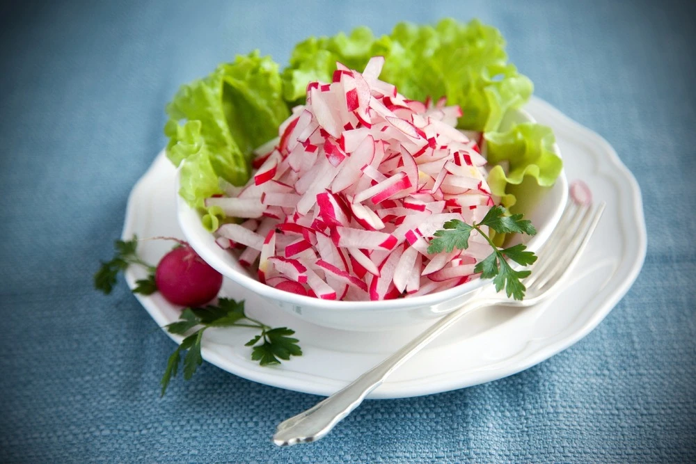 le cherry belle précoce, avec ses racines écarlates, croquantes et sphériques, est un choix populaire parmi les cultivateurs. Les radis rouges appartiennent à la famille des radis. Les petites sphères rouges sont les genres les plus connues, mais les radis se trouvent en une multitude de formes et de couleurs. Les radis ne doivent pas rester dans le sol pendant plus de 6 semaines, car sinon, ils perdent leur goût piquant typique et deviennent ligneux. Si la plante fleurit déjà, les radis ne sont plus comestibles en général. Les radis doivent être fraîchement récoltés, car ce ne sont pas des légumes qui peuvent être conservés. Il est mieux de récolter les légumes-racines, comme le radis, tard l’après-midi. Ceci garantit le meilleur taux de vitamines et la plus faible quantité de nitrate. Vérifiez la taille des bulbes sur les plantes avec les plus grandes feuilles tous les jours. Les radis sont mûrs avec un diamètre de deux à trois centimètres. Vous pouvez ensuite récolter tous les radis dont les bulbes font cette taille. Les radis sont généralement mangés crus dans les salades. Les radis coupés sont excellents dans les salades de patates, où son croquant passe bien avec les pommes de terres et la mayonnaise froide.