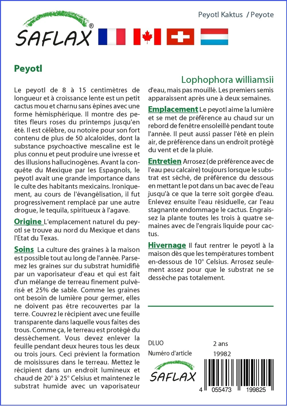 saflax – kit de culture – peyotl – 20 graines – avec mini-serre, substrat de culture et 2 pots – lophophora williamsii