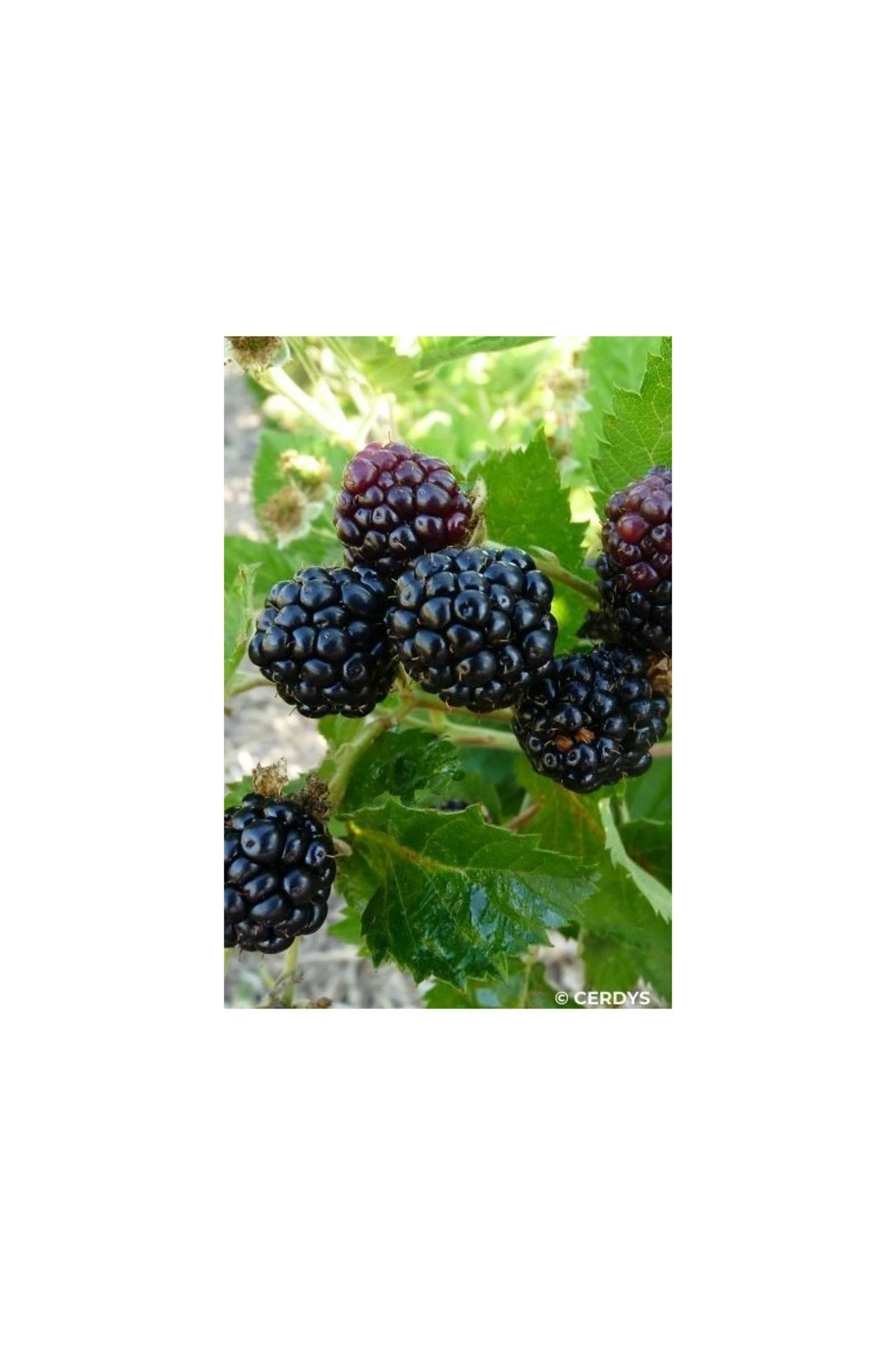 le murier fruticosus montblanc’ est un sous arbrisseau fruitier, très rustique et très vigoureux, de la famille des rosacées. Sur ses nouvelles pousses de l’année vont se succéder, des petites fleurs blanches puis de gros fruits noirs délicieux et juteux. Son feuillage caduc est composé de petites feuilles vertes, dentelées sur les bords. Très généreux de la mi-août jusqu’à l’automne il peut régaler toute la famille. Les fruits se mangent tout frais ou en coulis, gelées, confitures, tartes, salades de fruits