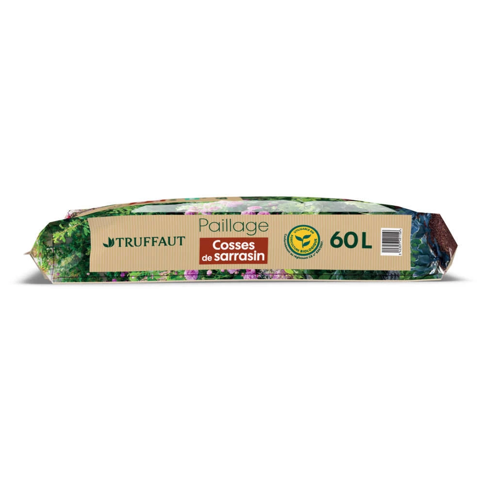 Les cosses de sarrasin constituent un excellent protecteur des cultures, il fait barrière aux limaces et escargots. Une fois humide, il peut retenir la moitié de son poids en eau, ce qui permet de limiter les arrosages. D’une durée de vie de 6 mois à 1 an, il se décompose rapidement. Il peut être ainsi incorporé à la terre en fin de culture, pour la regénérer en matière organique et ainsi obtenir de meilleurs rendements lors des prochaines plantations. Il est particulièrement recommandé au potager ou au verger, mais également au pied des fleurs vivaces et annuelles.
