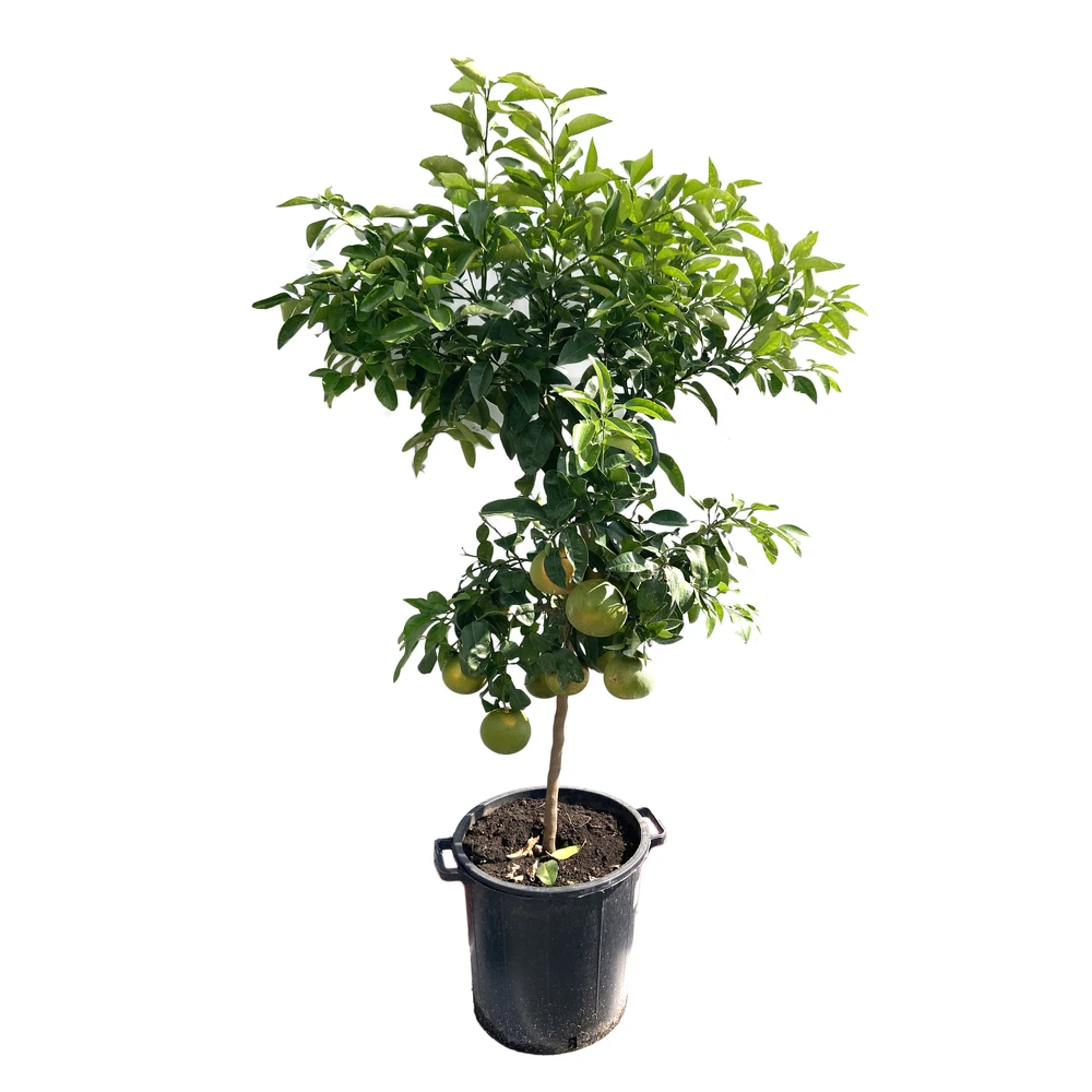 Originaire des Antilles, le Pomelo (Citrus x paradisi) est un hybride du Pamplemoussier (Citrus grandis) qu’il a remplacé dès le XVI ème siècle. Il existe plusieurs variétés à chair rose.’Star Ruby’ est l’une de ces variétés.Ce Pomelo atteint une hauteur de 8 m pour une largeur de 5 m. Feuillage persistant, vert plus clair dessous. Feuilles de 10 à 15 cm, épaisses, ovales, pointues. Floraison blanche, parfumée, de novembre à mars, en même temps que les fruits. Ceux-ci mesurent de 10 à 15 cm. Ils se cueillent dès qu’ils commencent à se colorer. Chair rose, juteuse et sucrée. Rustique jusqu’à -7°C.On les plante en France sur la Côte d’Azur en pleine terre, dans un sol léger, humifère, bien drainé. Exposition au soleil, à l’abri des vents forts. Partout ailleurs, culture en pot en rentrant la plante de novembre à avril dans une véranda tenue hors gel, à une température comprise entre 5°C et 10°C.