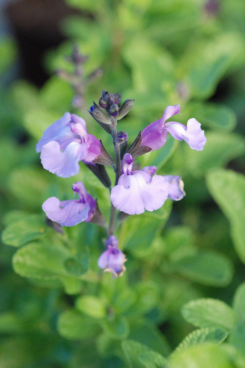 la sauge ‘so cool pale blue’ a un port régulier et compact de 50 cm et se pare d’un ?feuillage aromatique semi-persistant. Ses délicates fleurs sont mises en valeur par des tiges sombres.